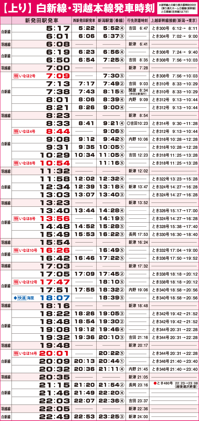 【上り】白新線・羽越本線発車時刻