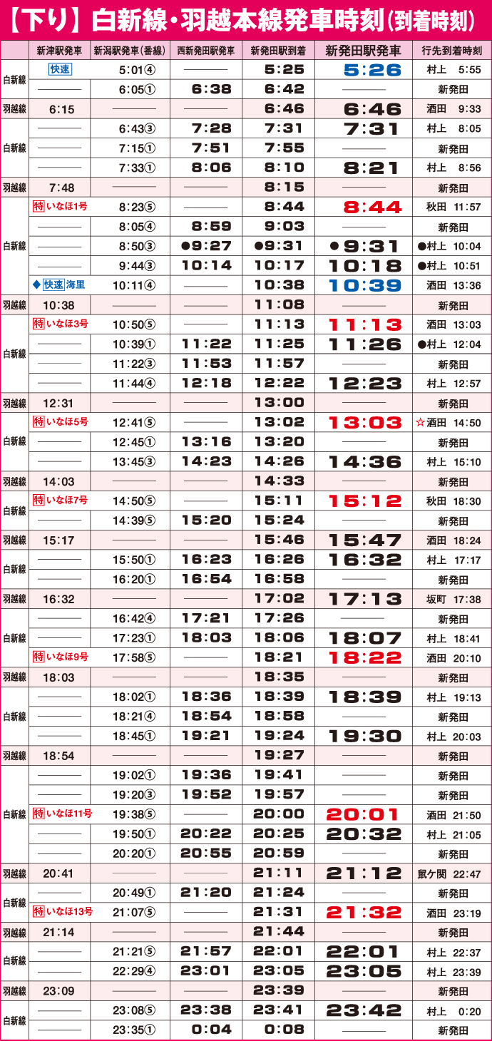 【下り】白新線・羽越本線発車時刻